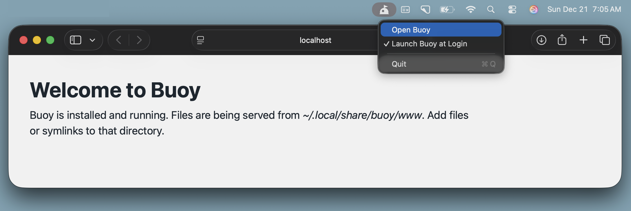 It uses the XDB standard, serving files out of `~/.local/share/buoy/www` and serves those files on localhost:42869. You create symlinks to your favorite directories. Great for serving custom dashboards, forms, and applications that you write for yourself.
